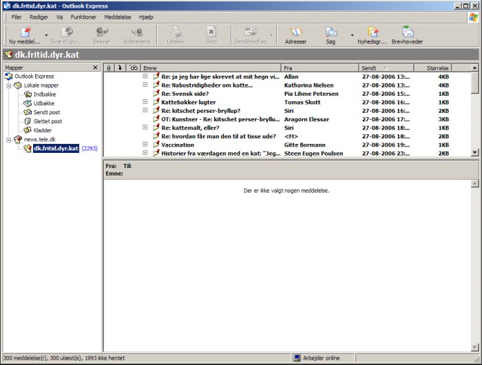 Yderste til venstre er der nu en liste over de nyhedsgrupper du abonnerer på. Du skal bare klikke på navnet, og så kan du se alle indlæggene.
