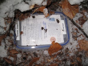 Onsdagscaching » En bundfrossen cache – vi kunne ikke få den op.