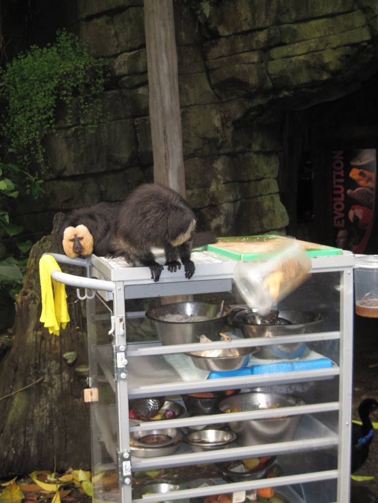 Dyr » Sakifar og søn på raid – læg mærke til madspanden der er på vej ned