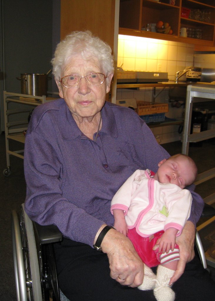 Og til Thisted for at besøge oldemor der. Ellen var med nede for at spise aftensmad – eller måske rettere for at blive vist frem. :)
